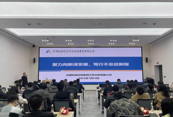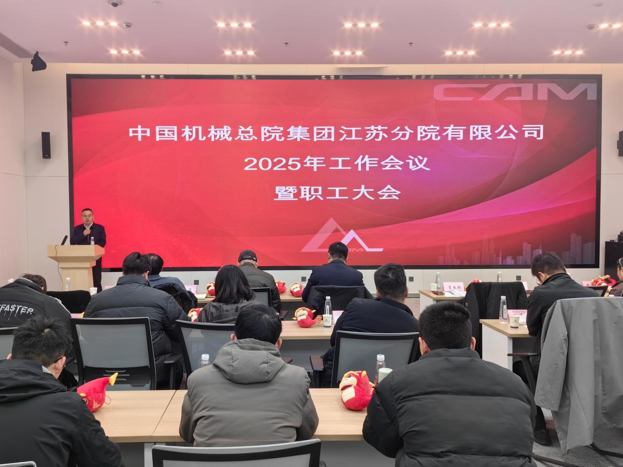 2025年1月24日,中国机械总院江苏分院召开2025年工作会议。会议以习近平新时代中国特色社会主义思想为指导,深入贯彻党的二十大和二十届二中、三中全会精神以及中央经济工作会议精神,落实集团2025年工作会议要求,全面总结江苏分院2024年工作,分析当前发展形势,谋划2025年重点工作。分院领导班子成员和全体干部职工参加会议,会议由副总经理庄百亮主持。